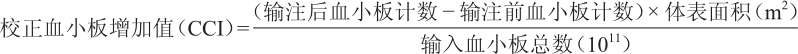 注:血小板的计数单位为10 9 /L,输注后1小时CCI >7.5×10 9 /L,24小时CCI >4.5×10 9 /L,表示临床有效,反之则无效。