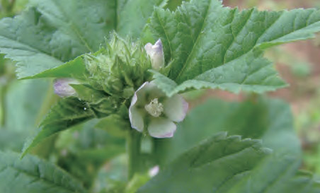 冬葵为一年生草本植物。茎不分枝,上有密柔毛。叶圆形,常5~7裂或角裂,基部心形,裂片为三角状圆形,边缘有细锯齿,叶两面无毛或有稀疏糙伏毛或星状毛,在脉上尤为明显;叶柄较瘦弱,上有稀疏的柔毛。白色小花单生或几个簇生在叶腋,花近无梗或有极短梗;花瓣5瓣。果是由7~9个小分果组成的扁球形,分果呈橘瓣状或肾形,果实的外表皮为棕黄色,背面比较光滑。肾形种子有坚硬的黑色至棕褐色的种皮,把种子弄破后能看到里面有心形的子叶两片。