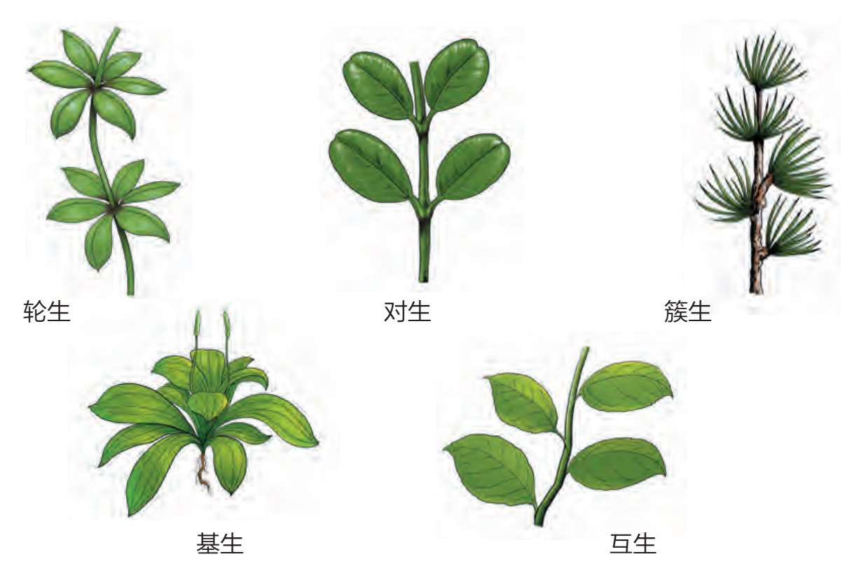 叶序是叶在茎上排列的方式,它的类型包括轮生、对生、簇生、基生和互生。