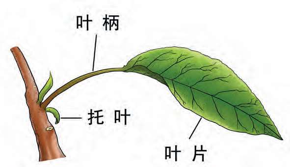 托叶是叶柄基部、两侧或腋部所着生的细小、绿色或膜质片状物。