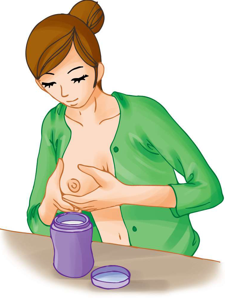 正确的挤奶姿势是将拇指放置在乳晕上方,其余四个手指放在乳晕下方,夹住后再轻轻推揉。推揉一段时间后,再用拇指在上、其余四指在下的姿势勒紧乳房向前挤奶。如果借助吸奶器进行吸奶,要注意个人和吸奶器的卫生。