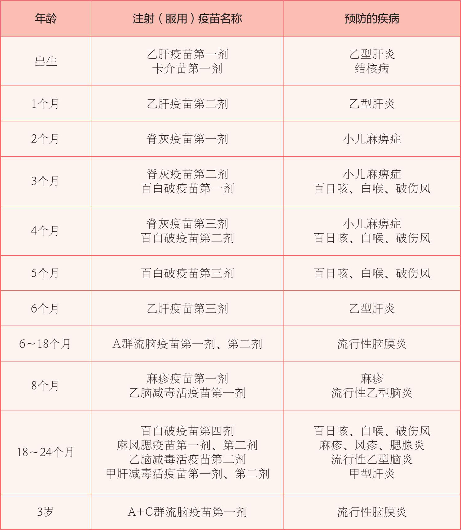 部分疫苗接种时间表