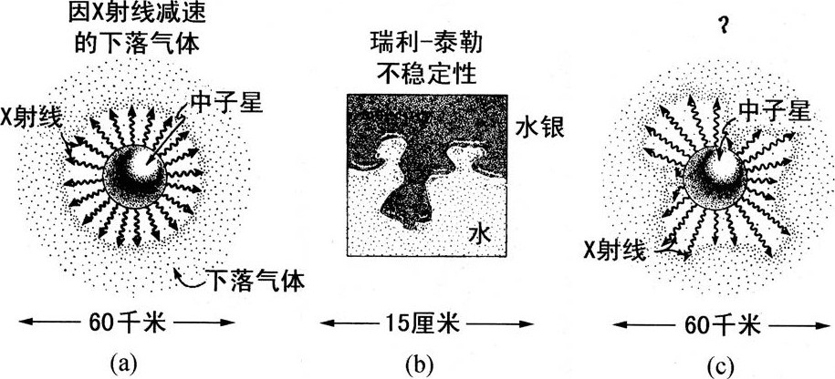 (c)下落的气体被中子星的X射线所支撑,也会出现瑞利—泰勒不稳定性吗