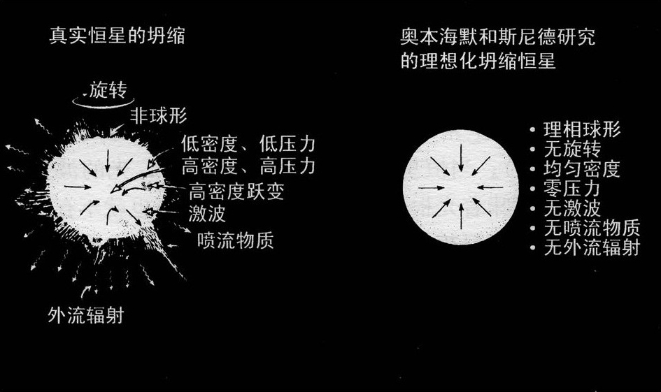 图6.3左:发生在真实坍缩恒星的物理现象。右:奥本海默