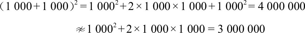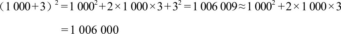 假定a是一个大数,例如1 000,而相比之下b很小,例如是3,那么公式中的第3项b 2 比起其余两项来是非常小的,因而可以舍去而不会产生多大误差: