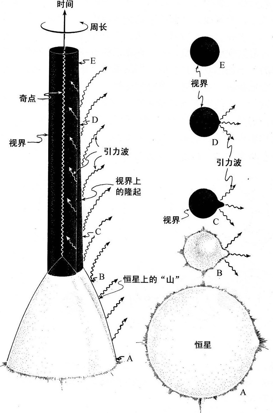 如果坍缩恒星的表面有小山,那么坍缩的结果是什么?是山在恒星接近临界周长时产生巨大的时空曲率呢(泽尔多维奇凭直觉否决了这个结果)?还是山的影响消失而留下一个完全球形的黑洞(泽尔多维奇喜欢这个结果)?另外,如果完全球形的黑洞形成了,它用什么办法使自己摆脱山的引力影响呢?什么使黑洞成为球形的?
