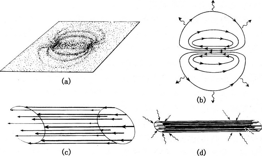 图7.1 (a)磁棒的磁力线,在磁棒上面