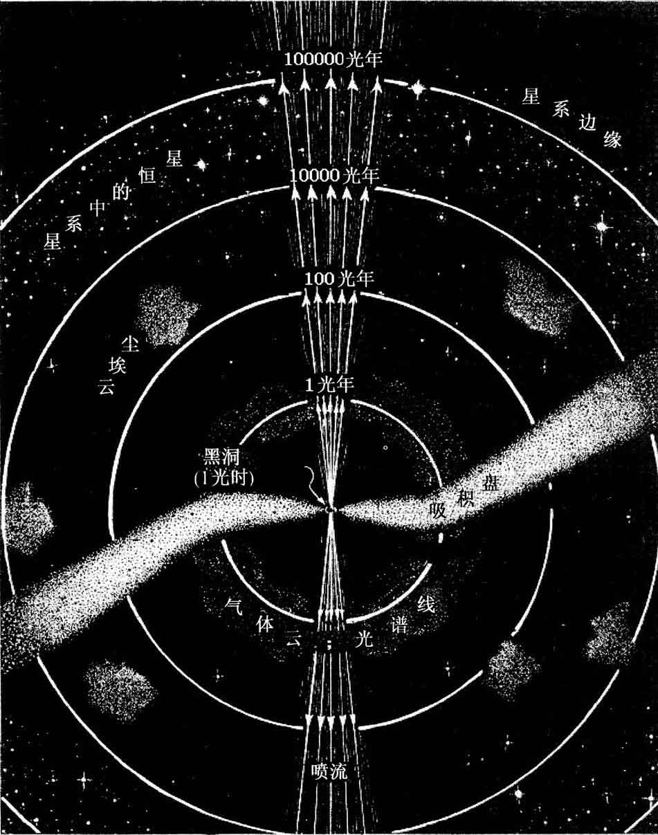 假如不是天文观测令人强烈感到星系的中心存在着巨黑洞,天体物理学家可能在20世纪90年代的今天也不会预言它的存在。不过,观测的确令人想到巨黑洞,天体物理学家也很容易让自己适应这种想法。从这一点可以看到,对星系中心真正发生了什么事情,我们的认识是多么贫乏。