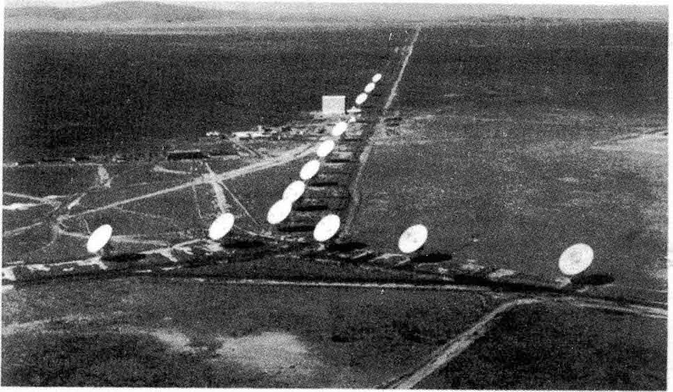 与四五十年代的射电干涉仪(图9.2)一样,VLA也采用“点盖碗”技术,不过它的碗大得多,点也多得多(联结着更多的射电望远镜)。它的分辨率达到了1弧秒,差不多与世界上最好的光学望远镜一样好——这是40年前人们对央斯基和雷伯的原始仪器所期待的巨大进步。但进步并没有就此停下。20世纪80年代初,由大陆或地球相对两端的射电望远镜组成的甚长基线干涉仪(VLBIs)得到了比光学望远镜的分辨率高1000倍的射电星系核和类星体的图片。(VLBI的各望远镜的结果记录在磁带上,并以一个原子钟为它们标记时间,然后将来自所有望远镜的磁带输入计算机,在机上相互“干涉”而成图。)