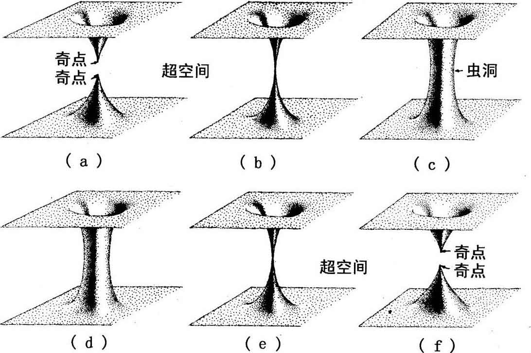 我们还知道,假如无限发达的文明凭某个方法得到了一个虫洞,那么,令虫洞打开(这样可以用来做星际旅行)的惟一办法是,让奇异物穿过洞。我们知道电磁场的真空涨落很有可能是一种奇异物:在很多不同的情况下,它们在弯曲时空里都可以表现出奇异性(在光束看来,具有负平均能量密度)。然而,我们不知道它在虫洞内是否还能奇异,从而为我们把洞打开。