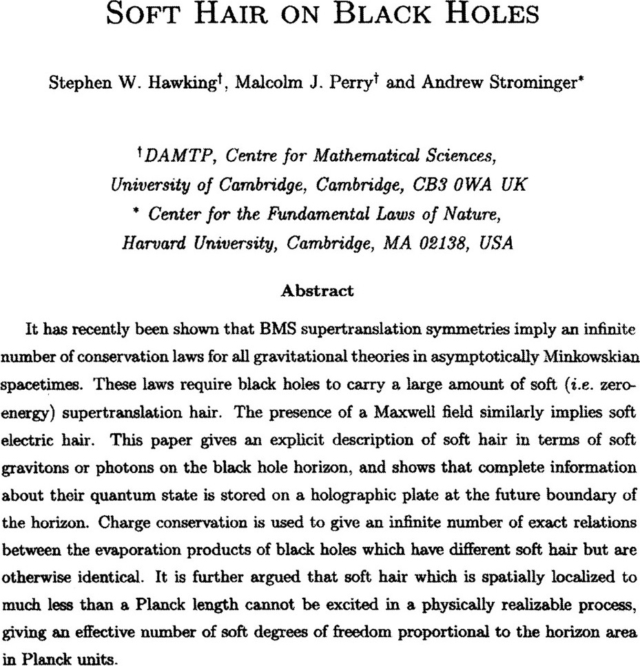 史蒂芬·霍金 + ,马尔科姆·佩里 + 和安德鲁·斯特罗明格 *