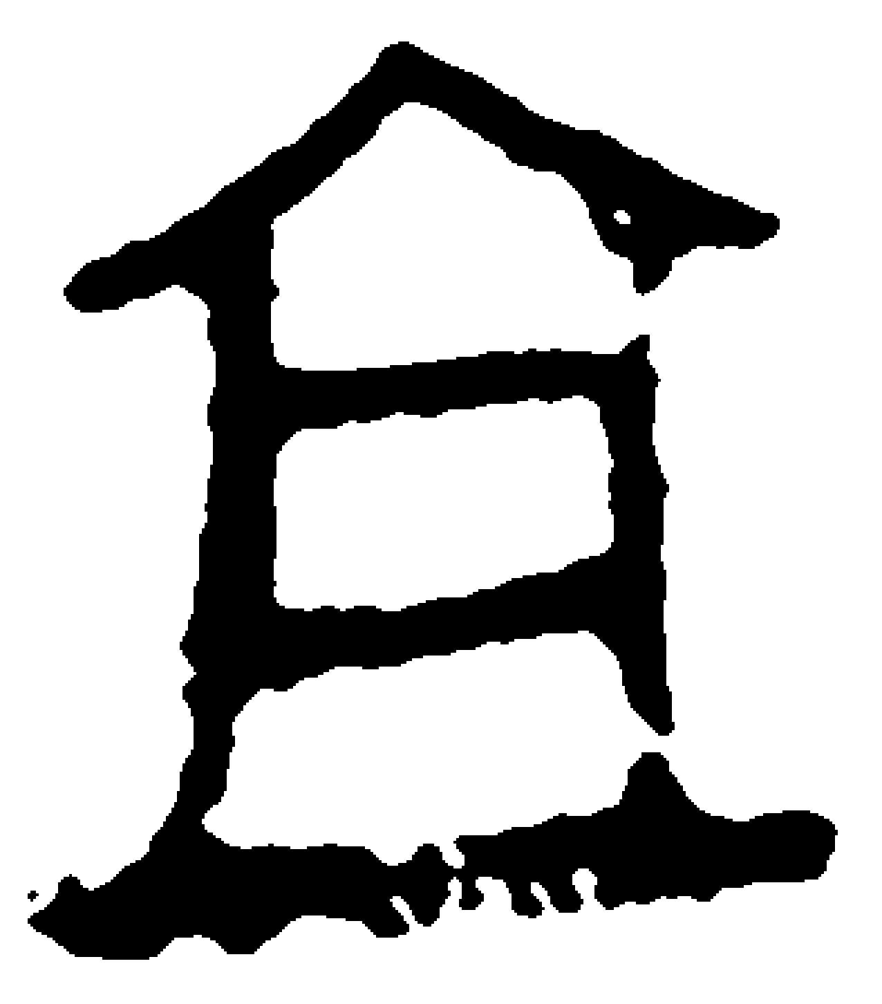太阳,一个永恒的圆,从山峰云端或汹涌的大海波涛中升起。有人认为这个符号就是表达“黎明”、“日出”的“旦”这个古字。元旦的“旦”,是太阳从地平线上升起,一直到今天,汉字的“旦”还是有明显的图像性,只是原来的圆太阳为了书写方便,“破圆为方”变成直线构成的方形而已。