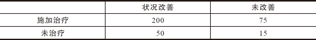 心理学家对人们这种忽略必要对照(控制组)信息的倾向开展了大量的研究。例如,在一个已经反复研究过的共变探测范式(covariation detection paradigm)中(Levin,Wasserman&Kao,1993;Shanks,1995;Wasserman,Dorner&Kao,1990),被试面对一个2×2的表格,其中给出了检验某一治疗手段与病人治疗反应间关系的一项实验的全部信息: