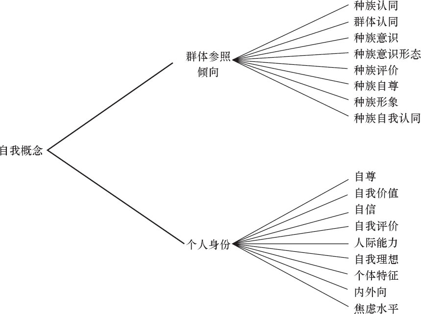 威廉·克劳斯(William Cross)描述了文化对自我概念(self-concept)的影响。他将自我概念划分为两个方面:个人身份(personal identity,PI),包括自尊、普遍的个性特征等因素;群体参照倾向(reference group orientation,RGO),包括性别、民族认同、群体意识、群体态度等文化群体认同(见图2-1)。克劳斯首先根据种族的特性来讨论参考群体倾向,来解释为什么来自同一民族群体,对该群体也有同样责任感的人会对民族特点有不同的认知,那是因为他们有不同的参考群体倾向。