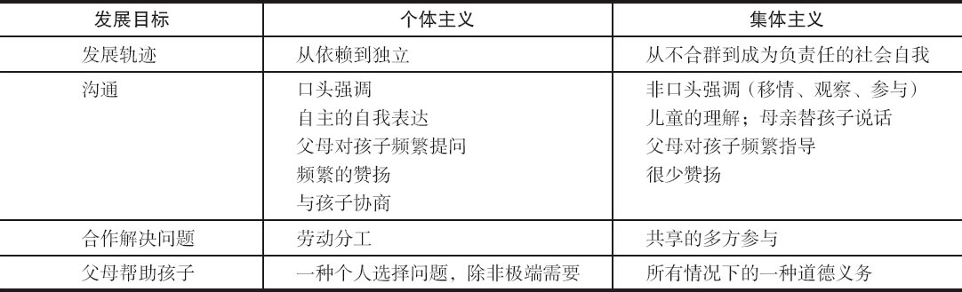 资料来源:Patricia M.Greenfield,Lalita K.Suzuki,and Carrie Rothstein-Fisch,“Cultural Pathways Through Human Development”,in Handbook of Child Psychology,6th ed.,eds.William Damon and Richard M.Lerner,vol.4:Child Psychology in Practice,eds.K.Ann Renninger and Irving E.Sigel(Hoboken,NJ:Wiley,2006),p.676.Copyright(C)2006.Reprinted by permission of John Wiley & Sons,Inc.