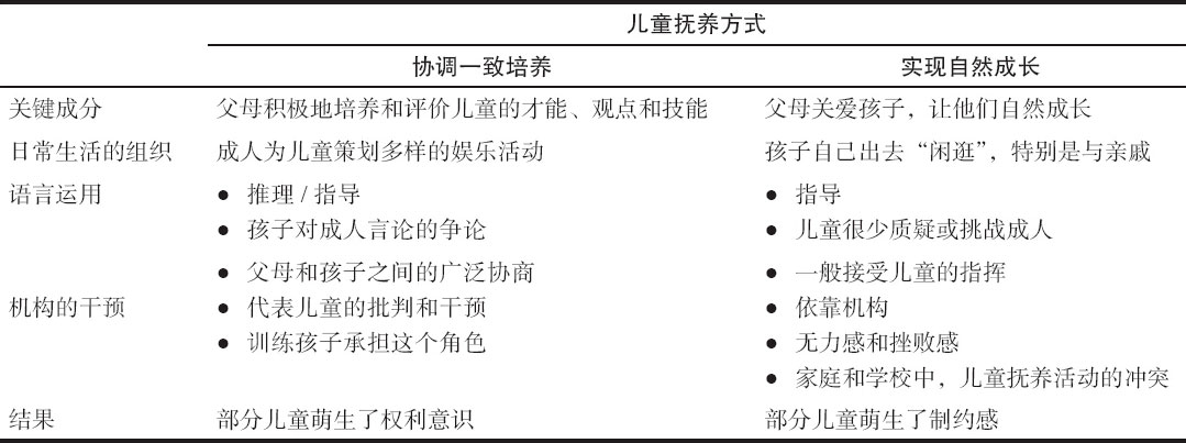资料来源:Annette Lareau,Unequal Childhoods:Class,Race,and Family Life(Berkeley:University of California Press,2003),237-238and 274.