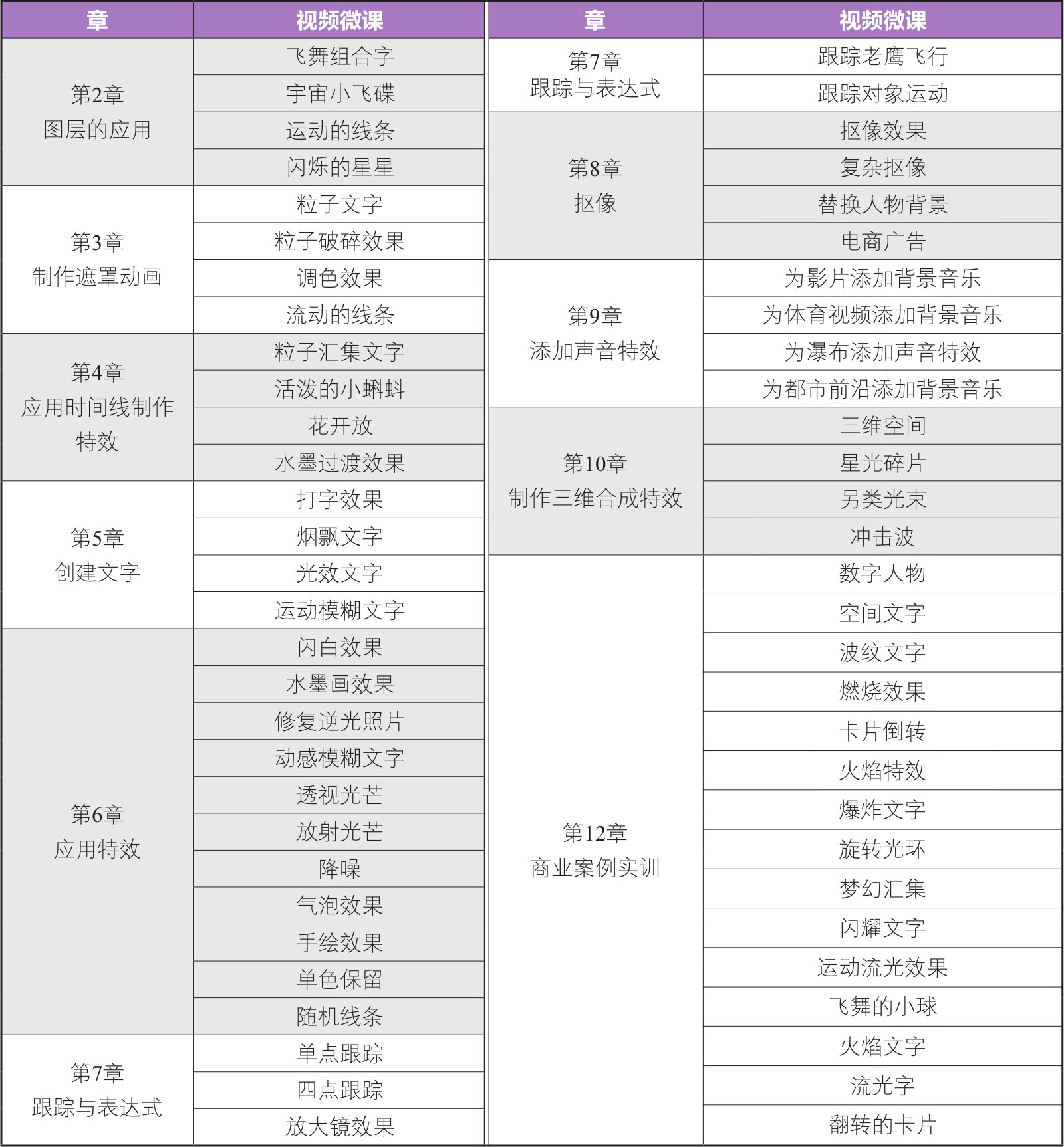 本书内容以课堂案例为主线,通过对各实际案例的讲解,使读者快速熟悉软件功能和影视后期设计思路。书中的软件功能解析部分,可以使读者深入学习软件功能和影视后期制作技巧。课堂练习和课后习题,可以提高读者的实际应用能力,使读者掌握软件的使用技巧。案例实训,可以帮助读者快速掌握影视后期的设计理念和设计元素,顺利达到实战水平。