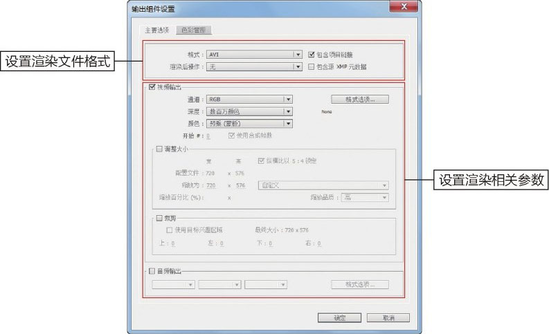 格式选项: 输出图片序列时,可以选择输出颜色位数;输出影片时,可以设置压缩方式和压缩比。