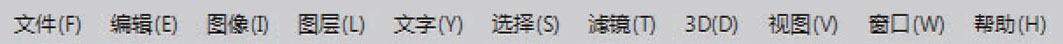 Photoshop CS6的菜单栏依次分为:“文件”菜单、“编辑”菜单、“图像”菜单、“图层”菜单、“文字”菜单、“选择”菜单、“滤镜”菜单、“3D”菜单、“视图”菜单、“窗口”菜单及“帮助”菜单,如图2-2所示。