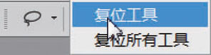 恢复工具的默认设置 :要想恢复工具默认的设置,可以选择该工具后,在相应的工具属性栏中,用鼠标右键单击工具图标,在弹出的菜单中选择“复位工具”命令,如图2-22所示。
