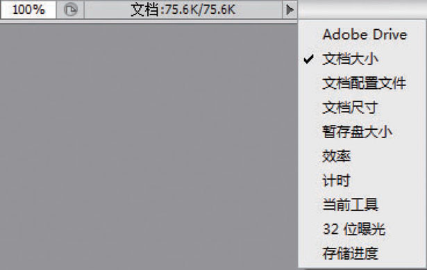 状态栏 :状态栏可以提供当前文件的显示比例、文档大小、当前工具和暂存盘大小等提示信息。