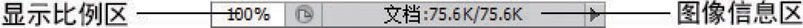 状态栏的左侧显示当前图像缩放显示的百分数。在显示区的文本框中输入数值,可改变图像窗口的显示比例。