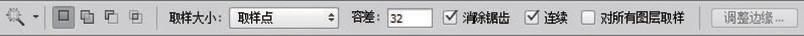 时,工作界面的上方会出现相应的魔棒工具属性栏,可以应用属性栏中的各个命令对工具做进一步的设置,如图2-26所示。