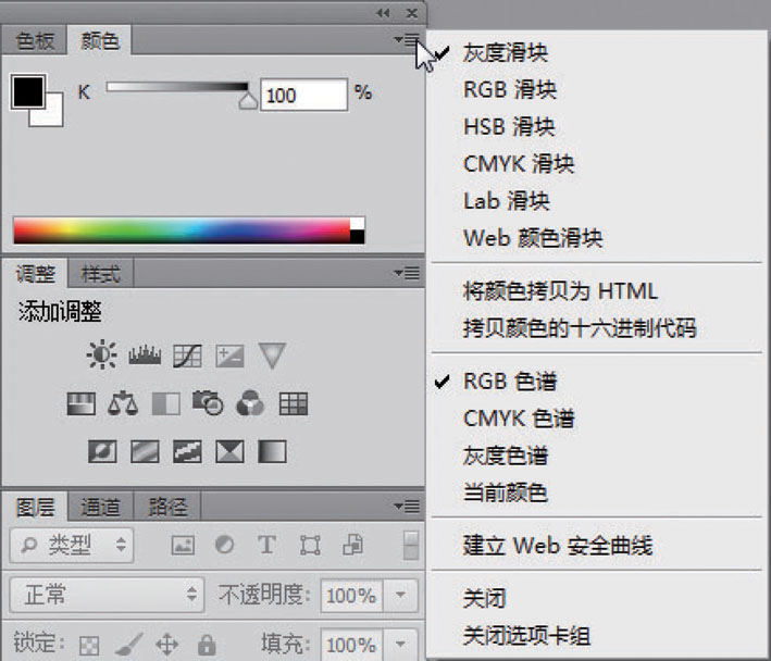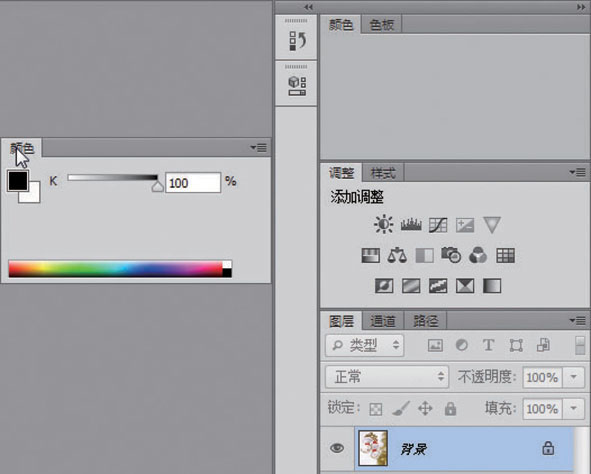 控制面板是处理图像时另一个不可或缺的部分。Photoshop CS6界面为用户提供了多个控制面板组。