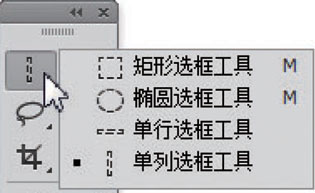 ,表示在该工具下还有隐藏的工具。用鼠标在工具箱中有小三角的工具图标上单击,并按住鼠标不放,弹出隐藏的工具选项,如图2-21所示。将鼠标指针移动到需要的工具图标上,即可选择该工具。