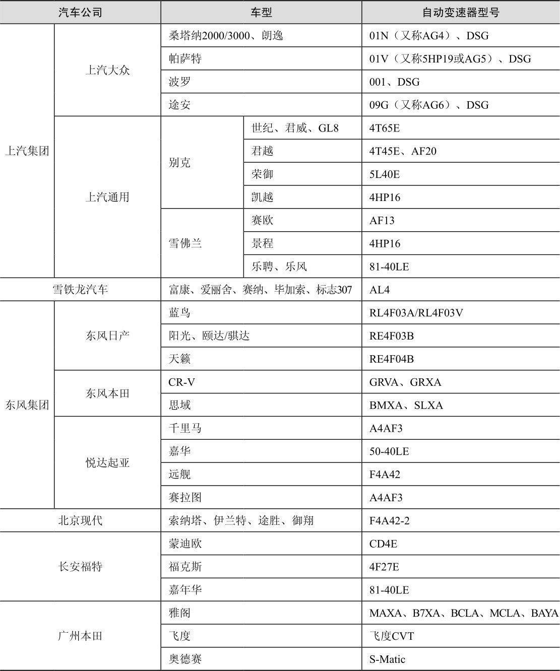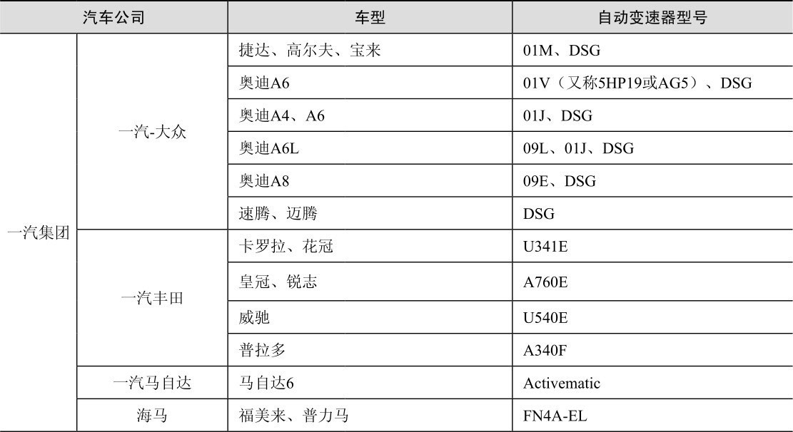 一般汽车生产厂家的技术资料上会有车型与变速器型号的对照表,查表也可知道相应的自动变速器型号。但有些车型配置不同的自动变速器,这种情况还需要进一步判断。