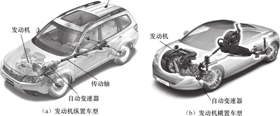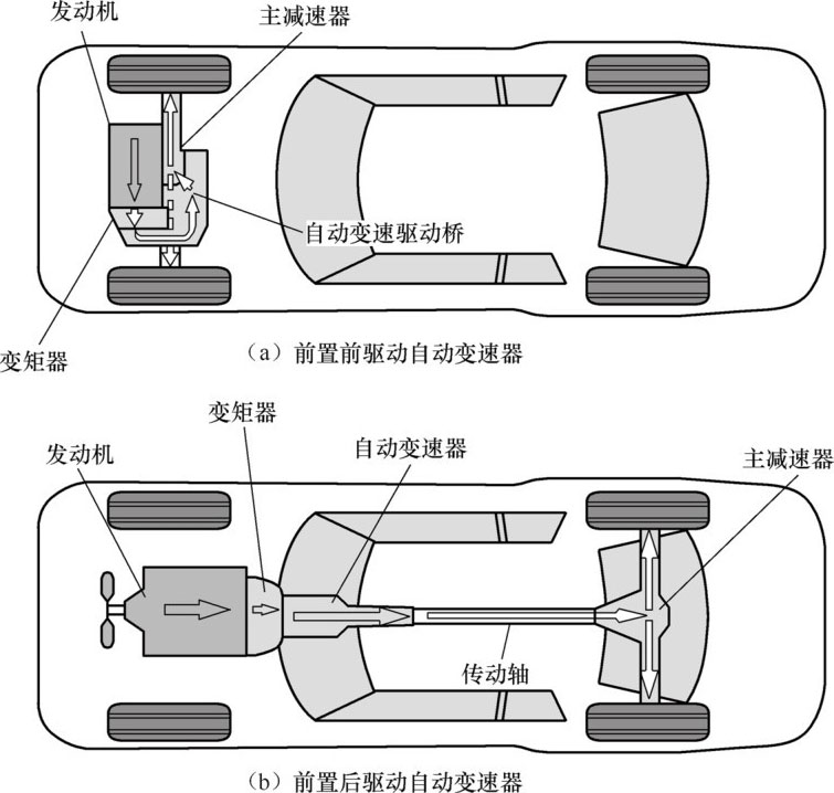 按自动变速器的布置不同,自动变速器可分为前置前驱动型和前置后驱动型2种,如图1-9所示。