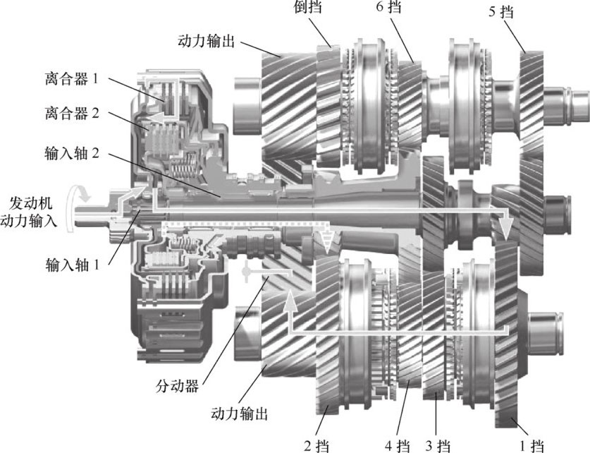 (5)向双离合方向发展。双离合自动变速器也称直接换挡变速器(Direct Shift Gearbox, DSG),是基于手动变速器发展而来的,综合了手动变速器与自动变速器的优点。