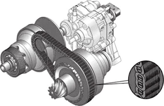 (2)无级式自动变速器(即无级变速器, CVT)。CVT可以实现整个传动比范围内的连续变化,即传动比的变化是不间断的。目前,采用钢带或链条传动,通过改变主、从动带轮的工作半径来改变传动比的自动变速器即属于无级式自动变速器,如图1-12所示。这种变速器在中、高级汽车中应用得越来越多。