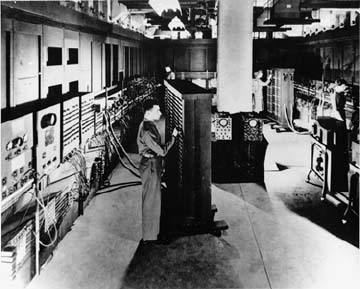 20世纪40年代后期,西方国家的工业技术得到迅猛的发展,相继出现了雷达和导弹等高科技产品,原有的计算工具对大量复杂的科技产品的计算无能为力,迫切需要在计算技术上有所突破。1943年,正值第二次世界大战,由于军事上的需要,宾夕法尼亚大学电子工程系的教授莫克利和他的研究生埃克特计划的世界上第一台计算机ENIAC(Electronic Numerical Integrator And Computer,电子数字积分计算机)诞生了,如图1-1所示。