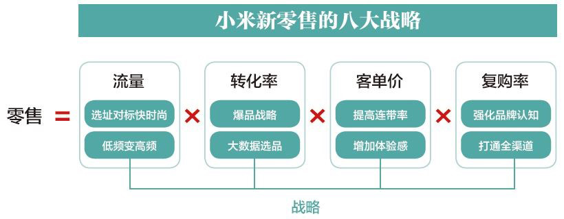 但是,极致的坪效只是个结果,把流量、转化率、客单价、复购率做到极致,才是手段。雷军开始耐心地逐个解释他的战略和打法。( 参见副栏“小米新零售的八大战略” )
