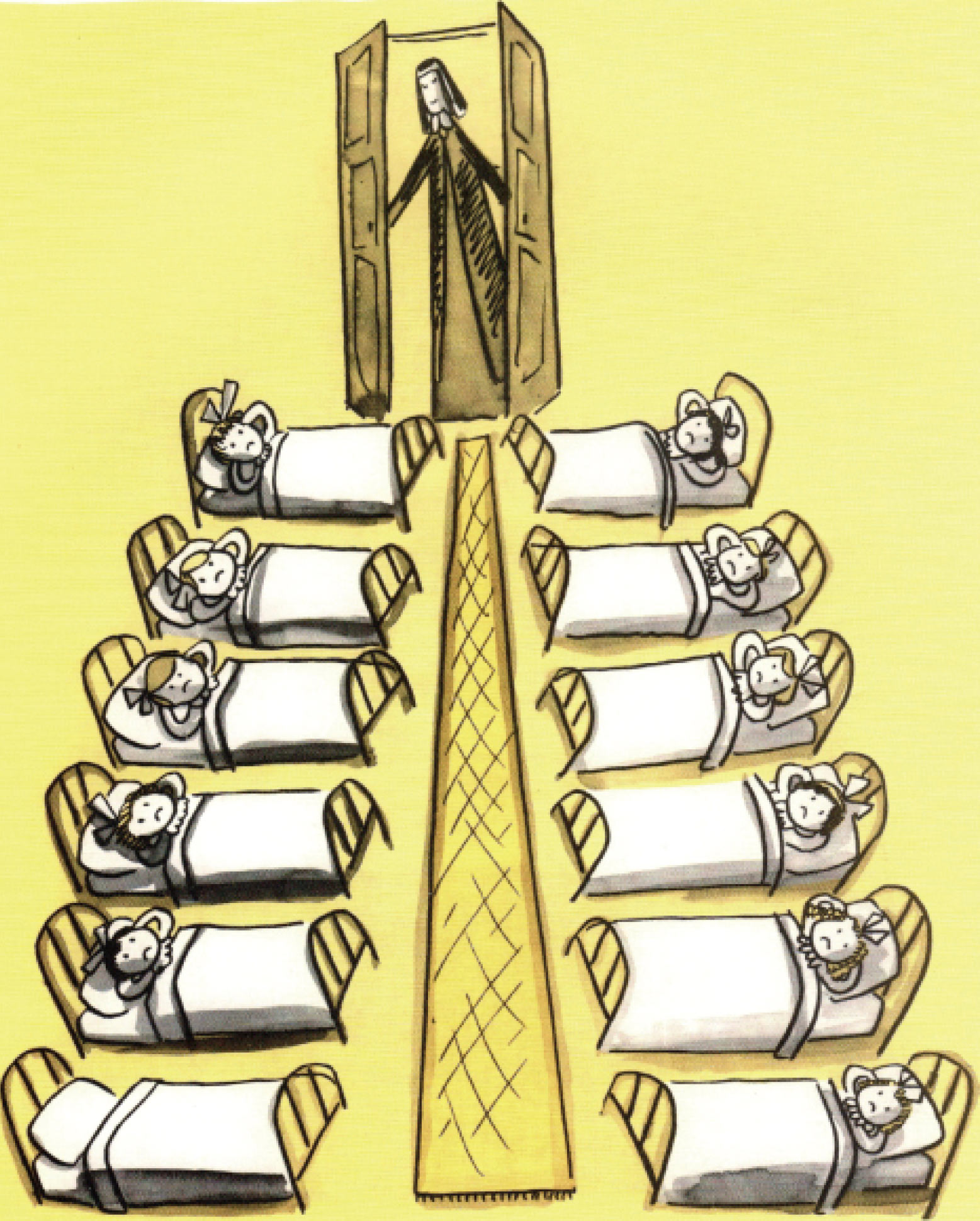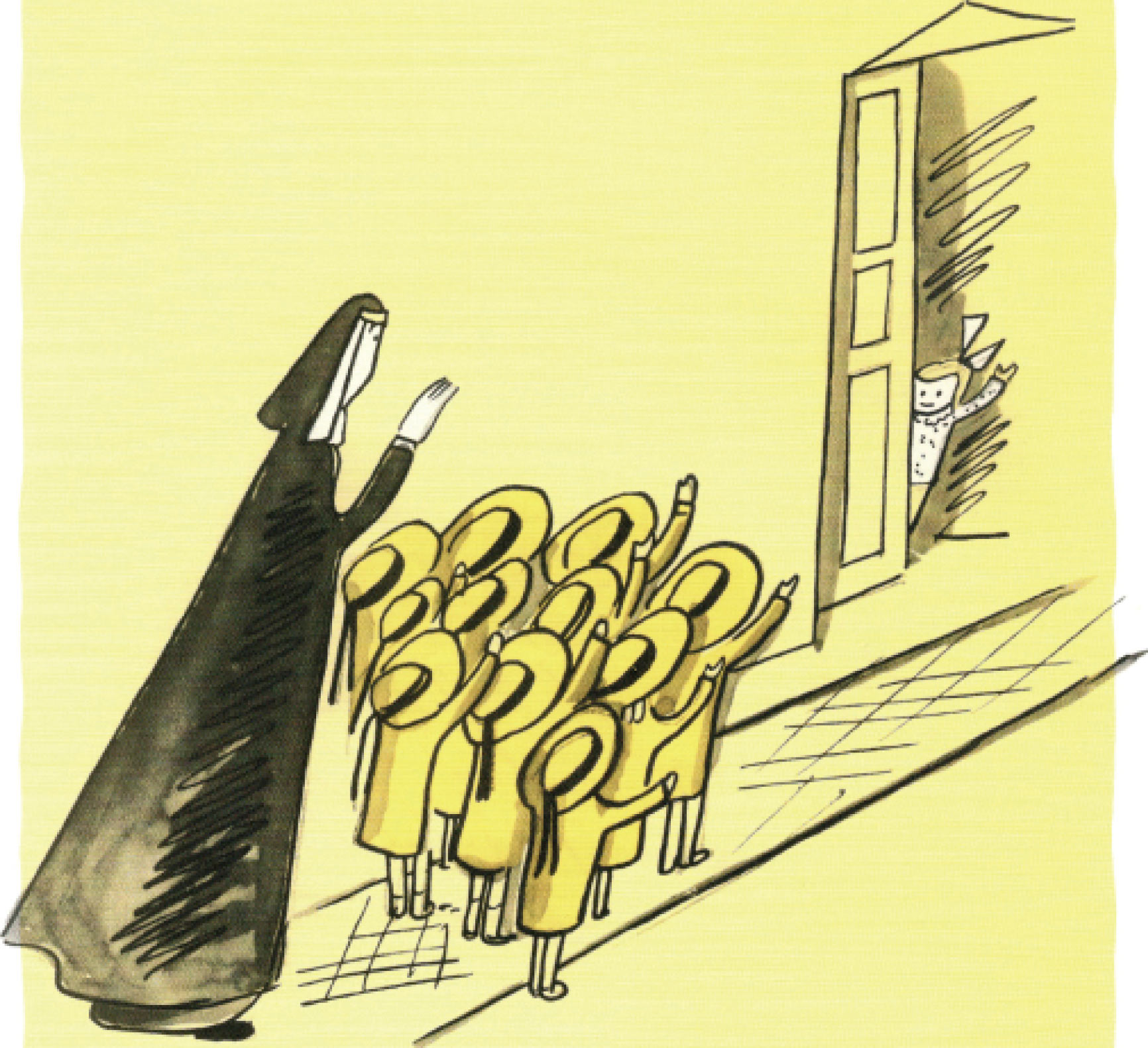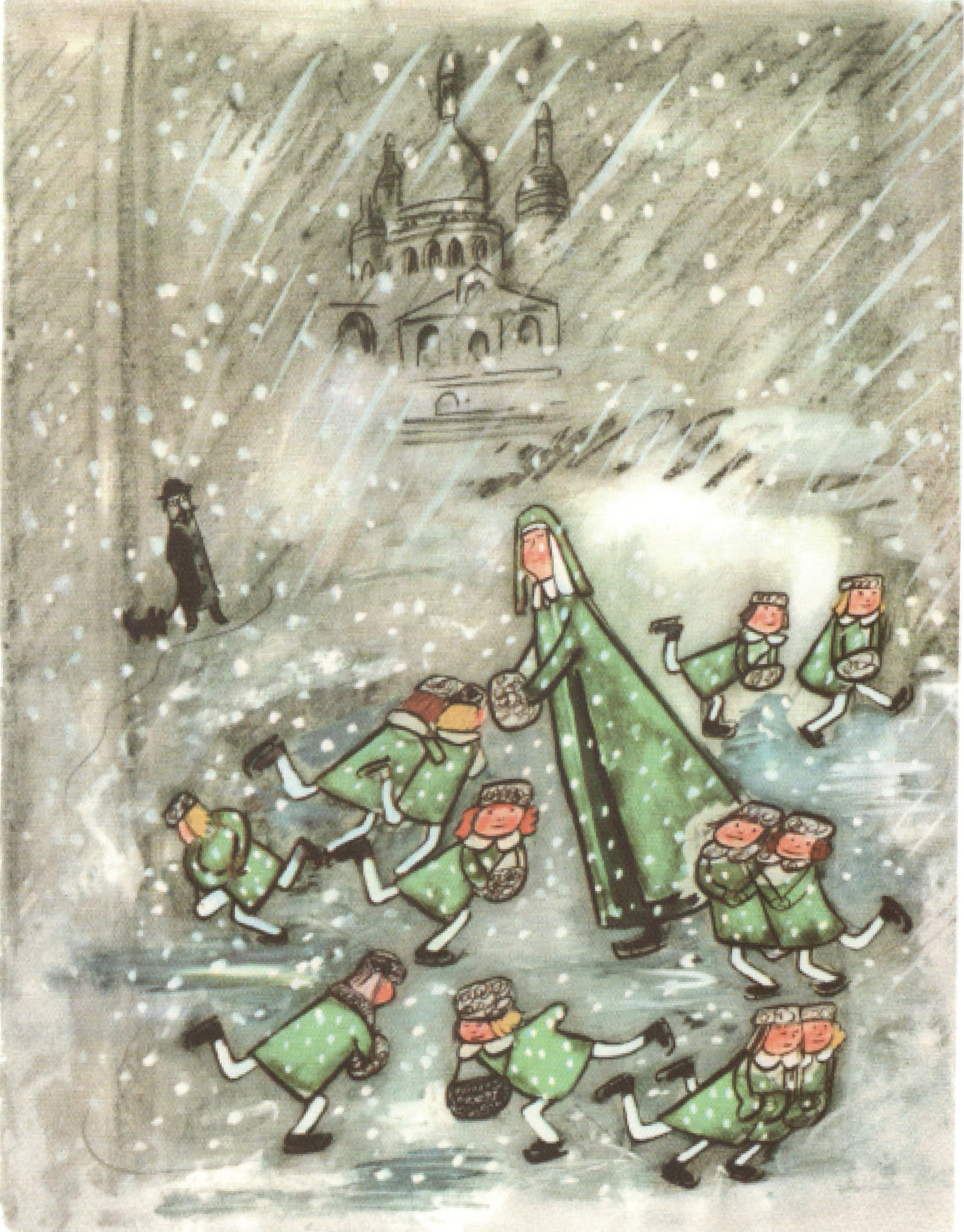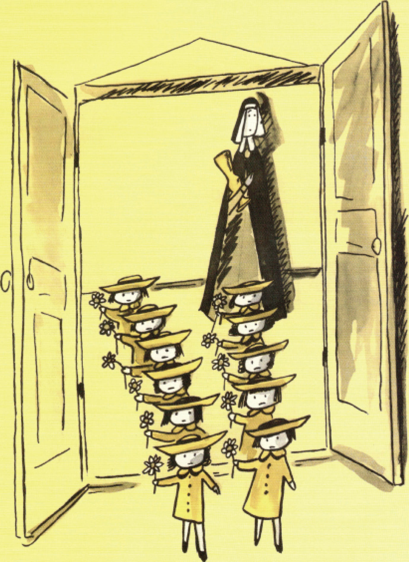 探视的时间结束了,小姑娘们向玛德琳道别:
