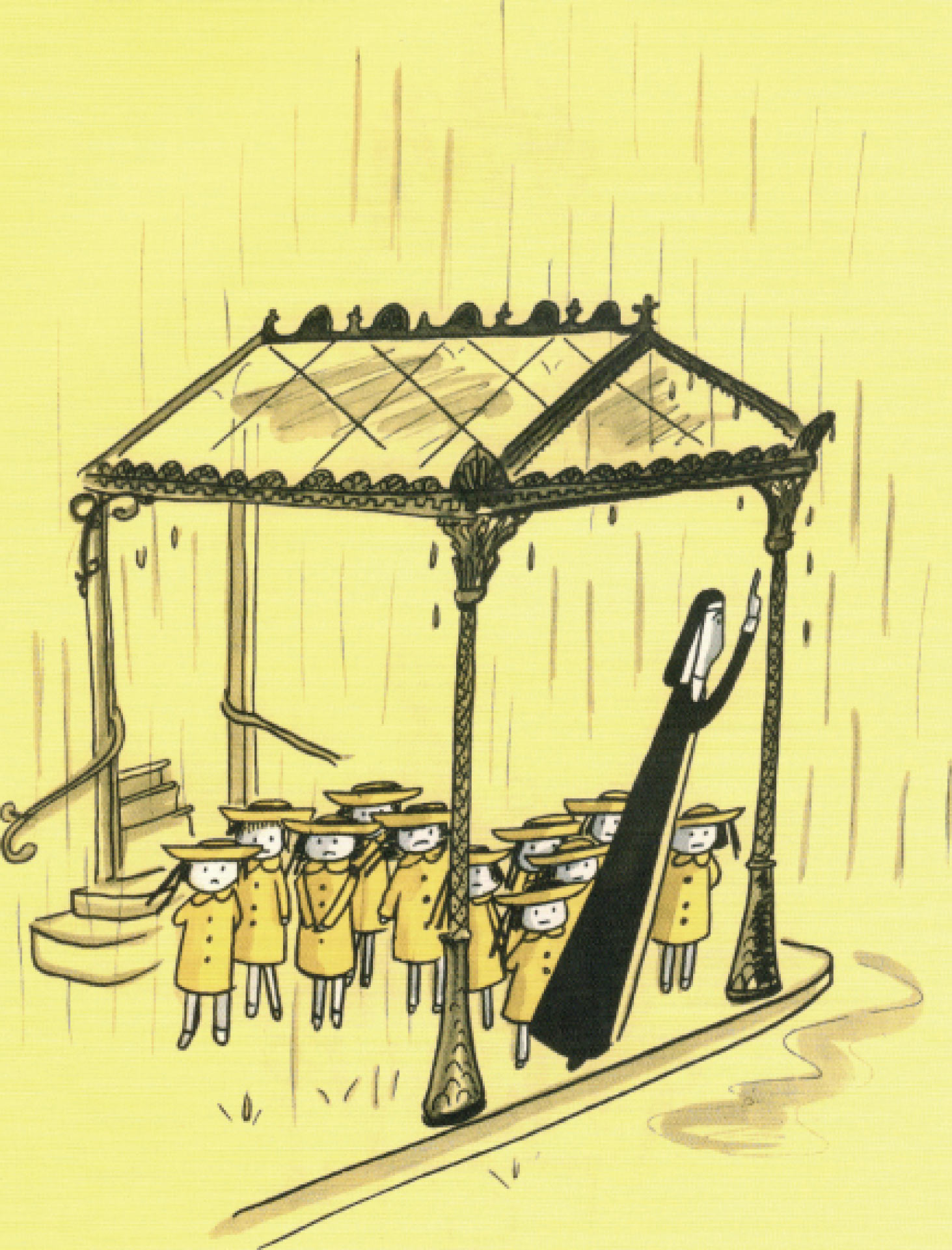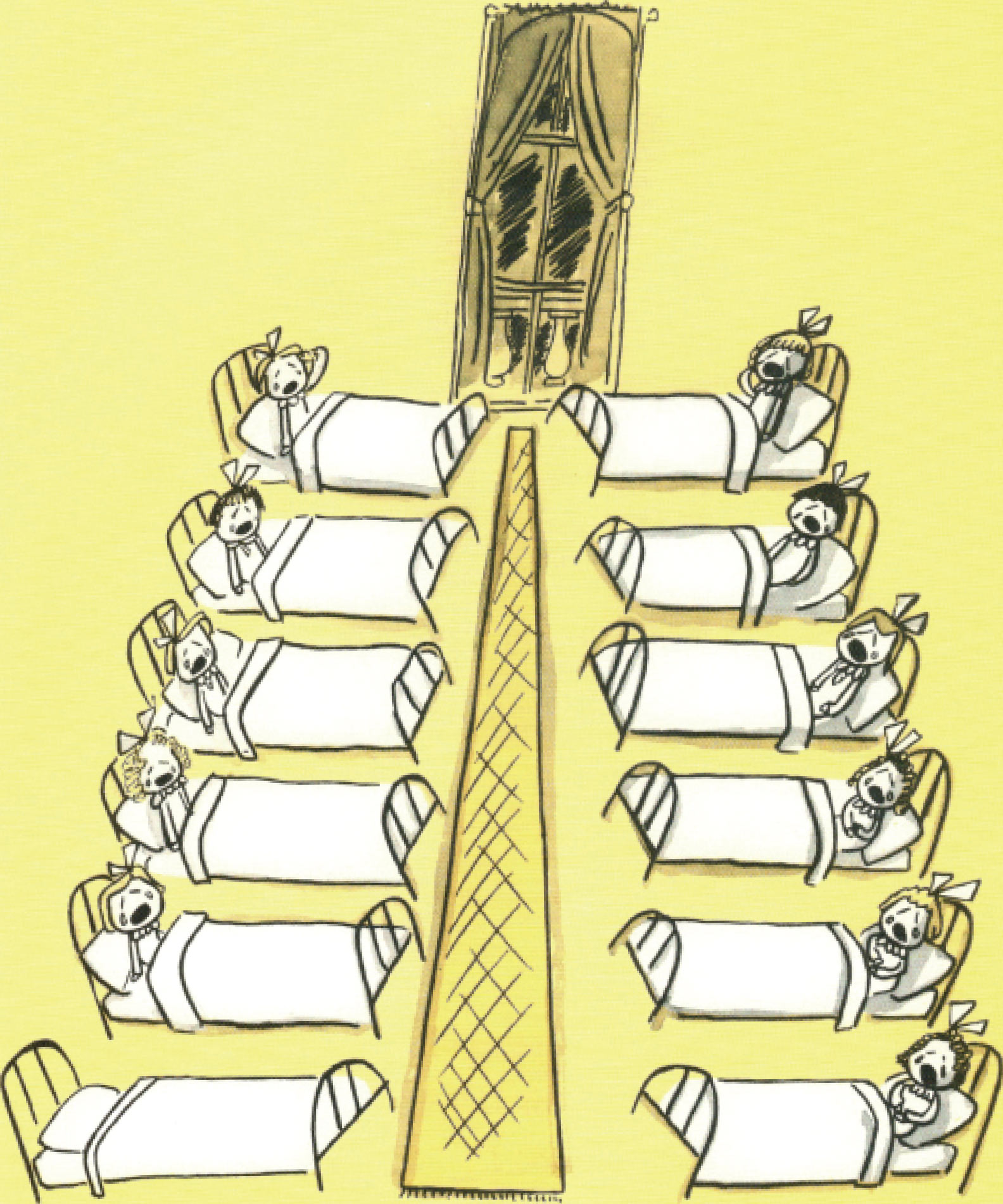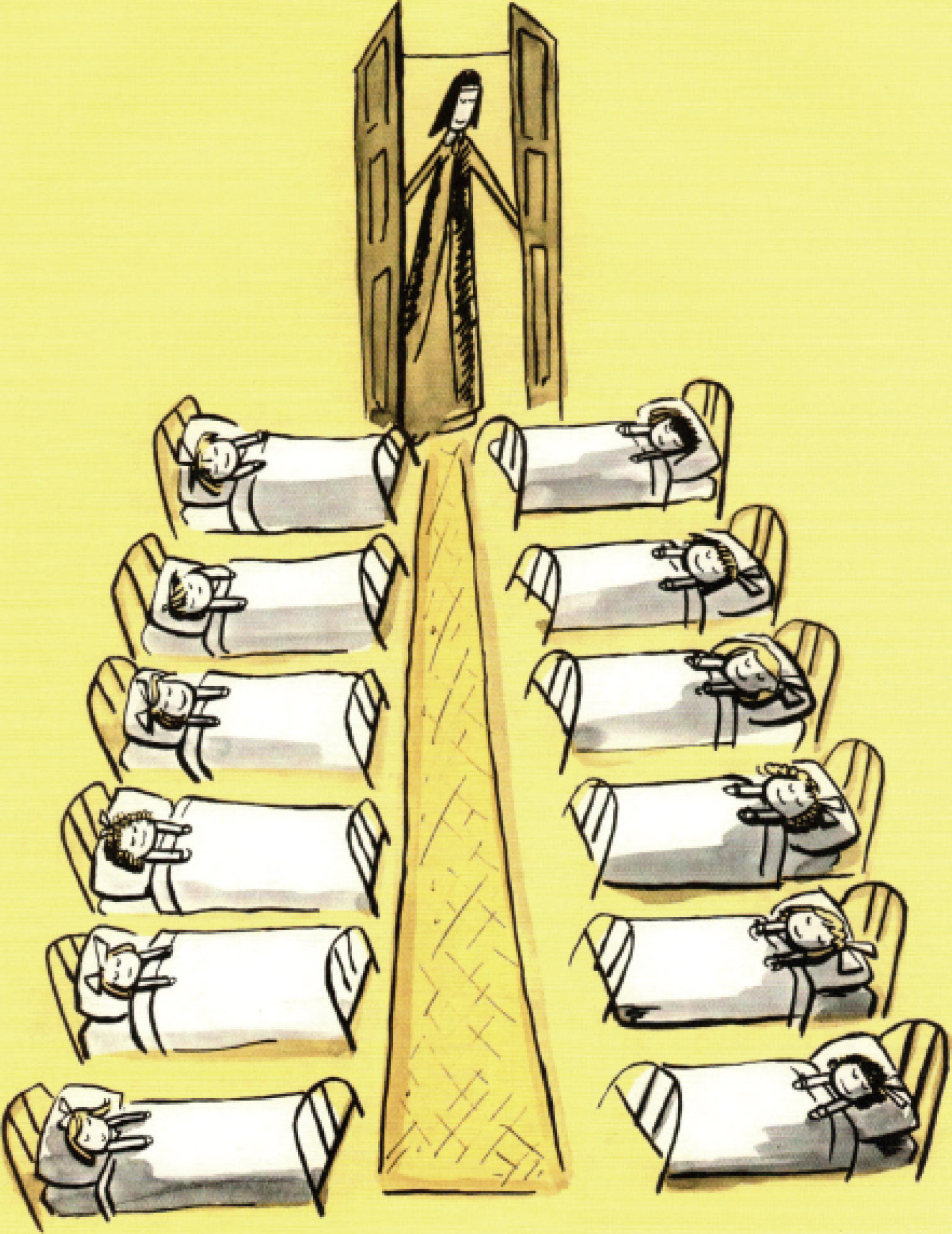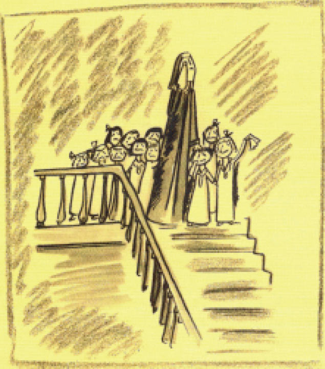 探视的时间结束了,小姑娘们向玛德琳道别: