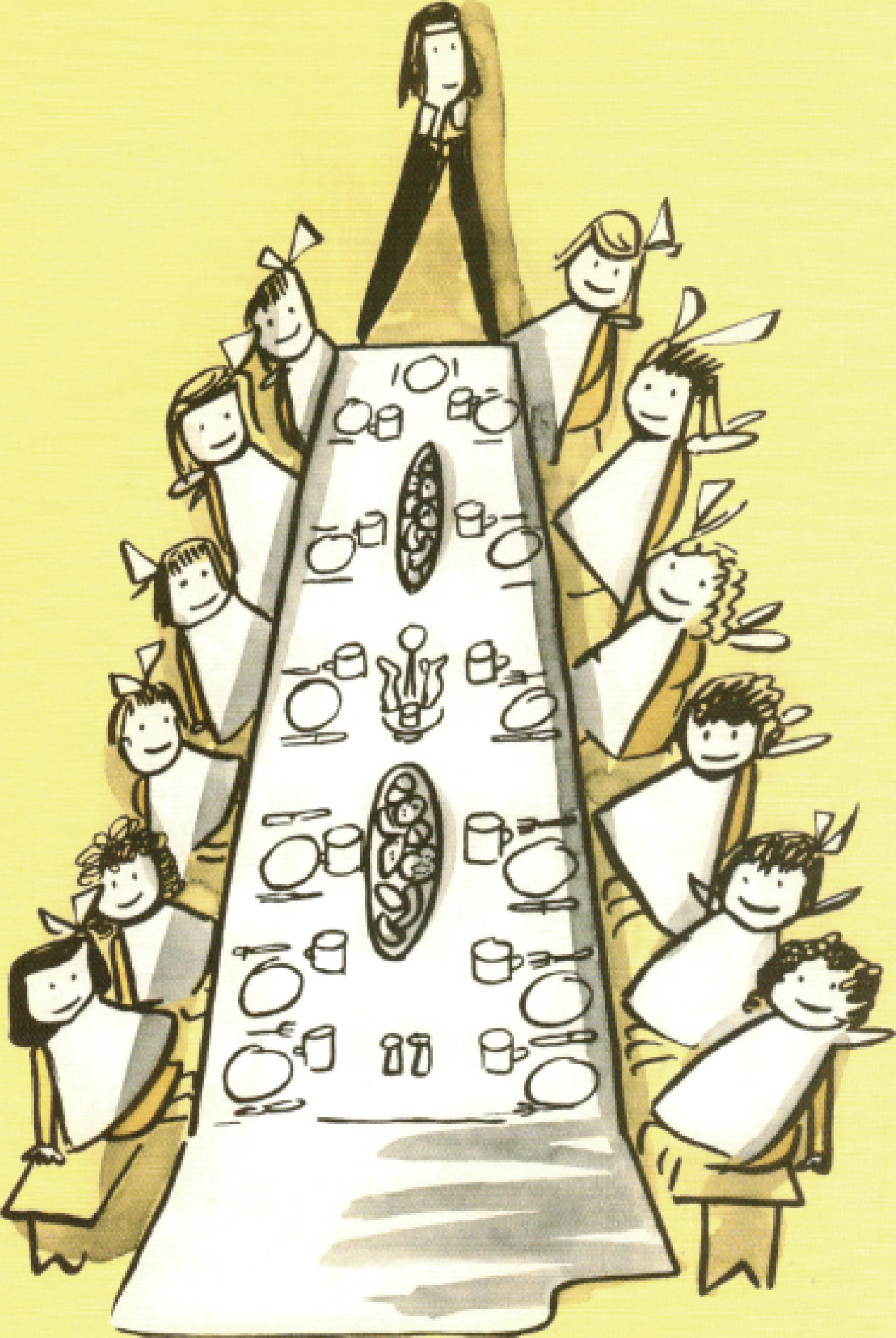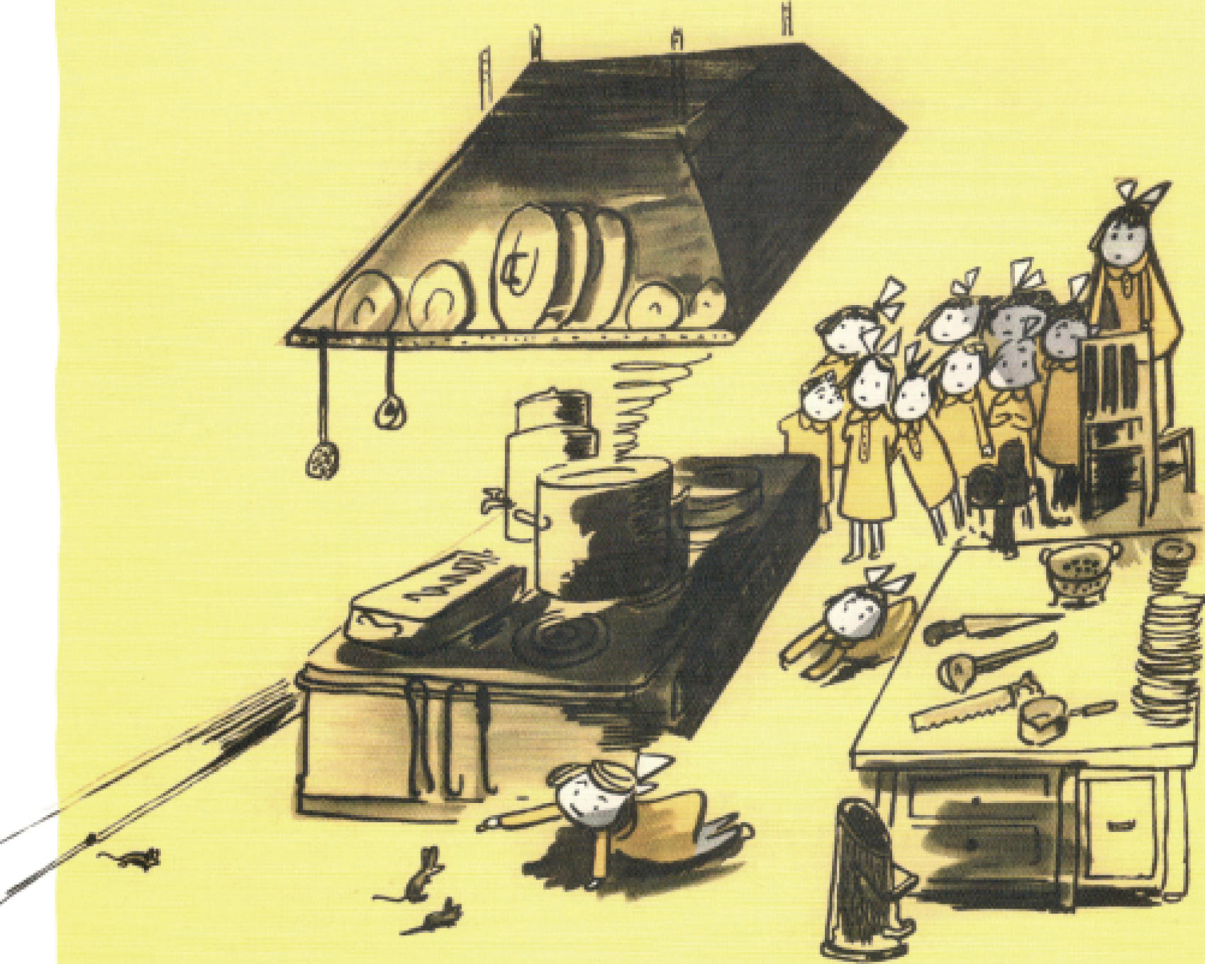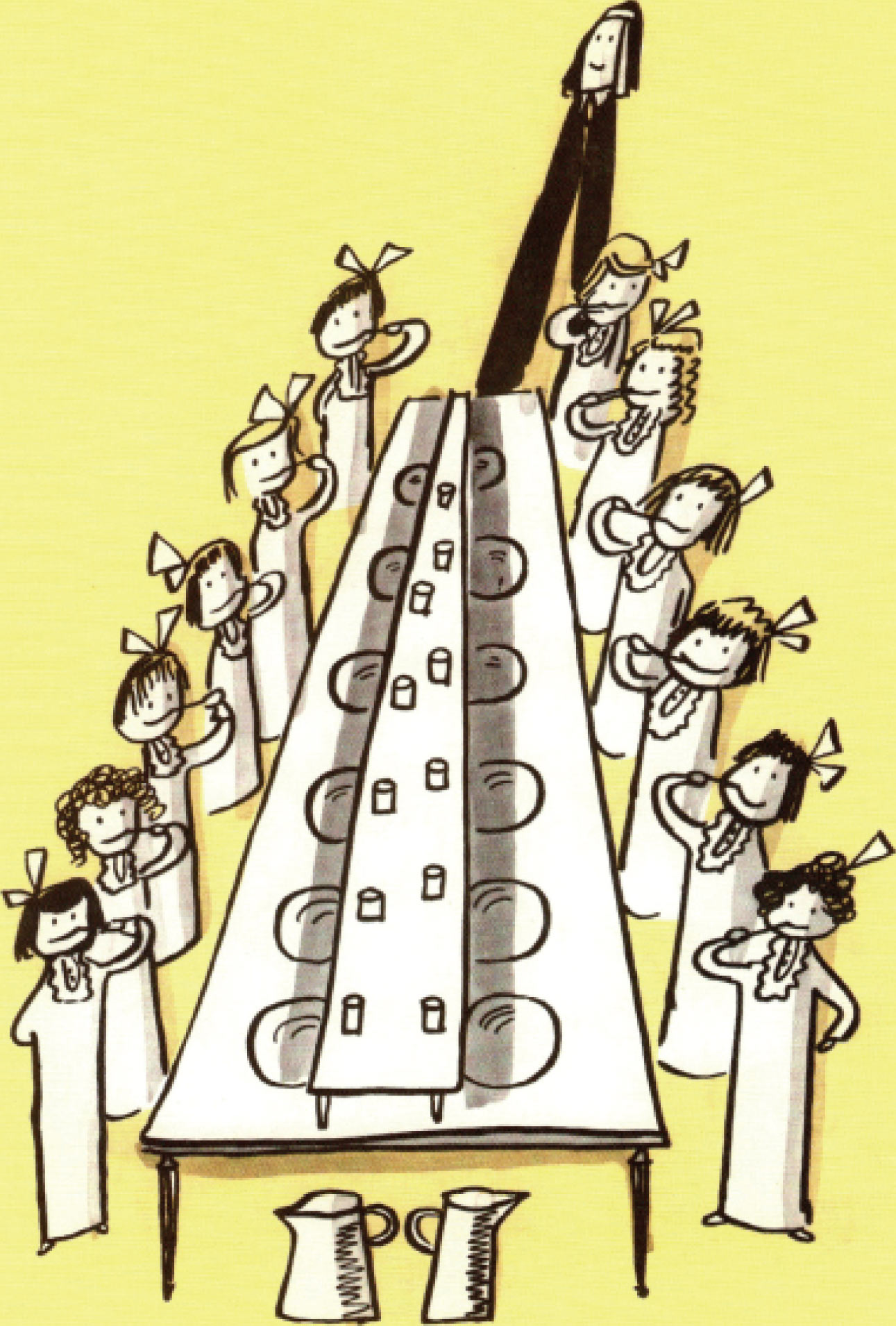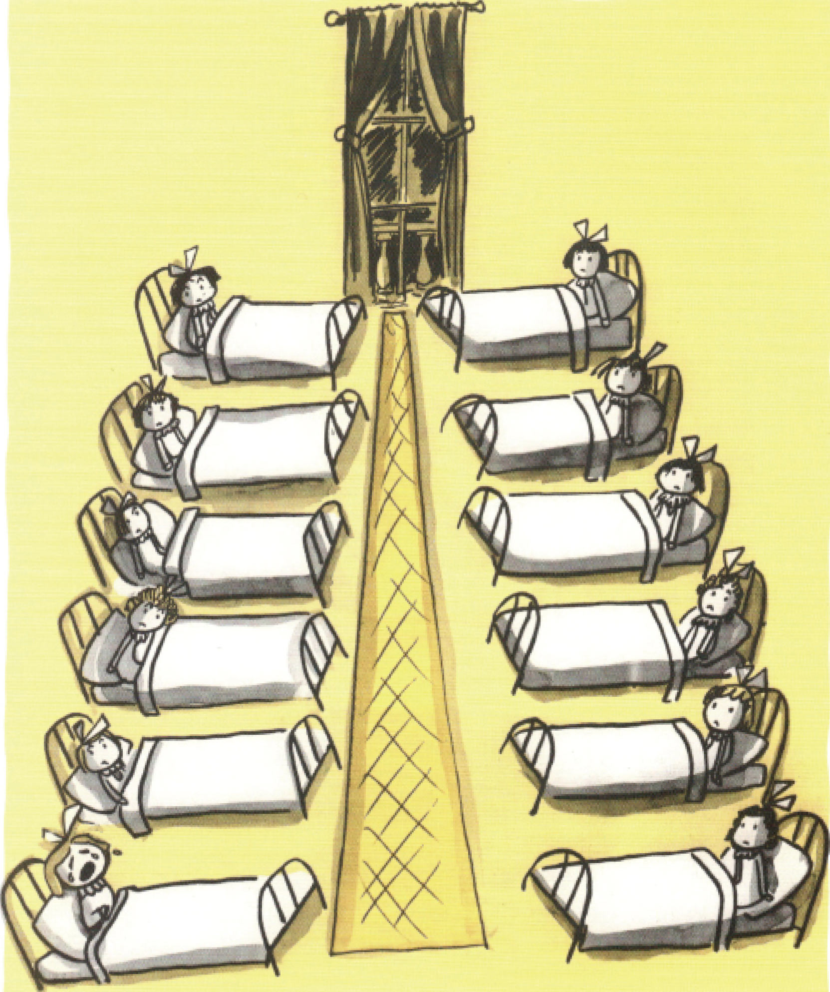 探视的时间结束了,小姑娘们向玛德琳道别: