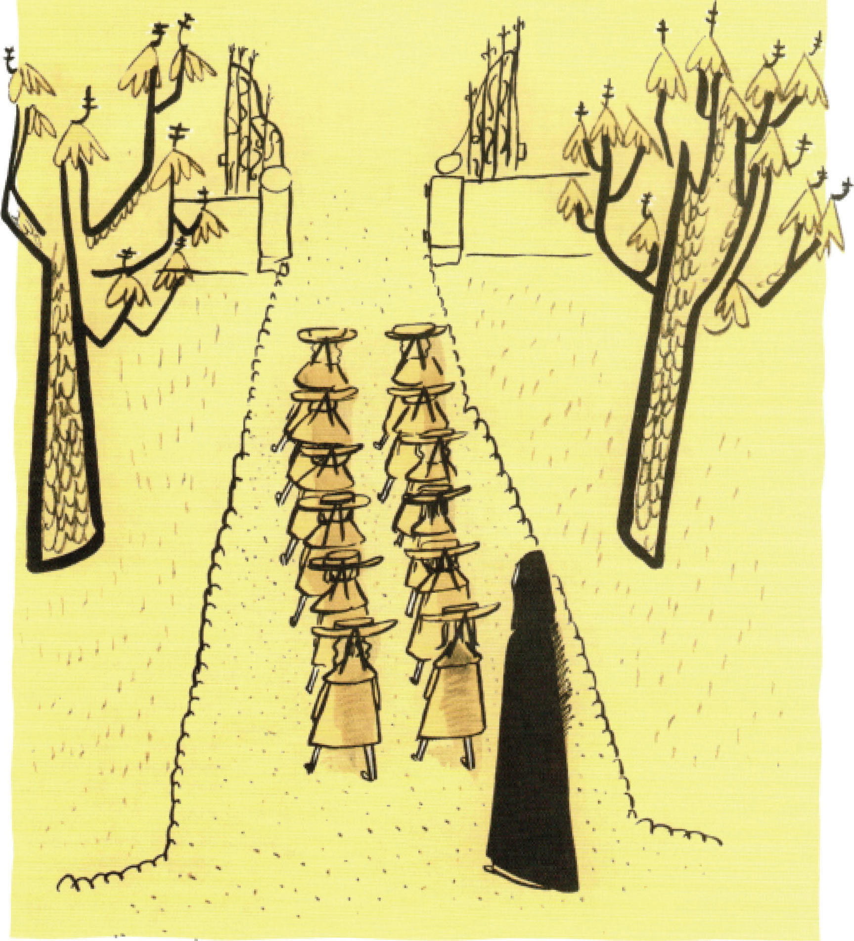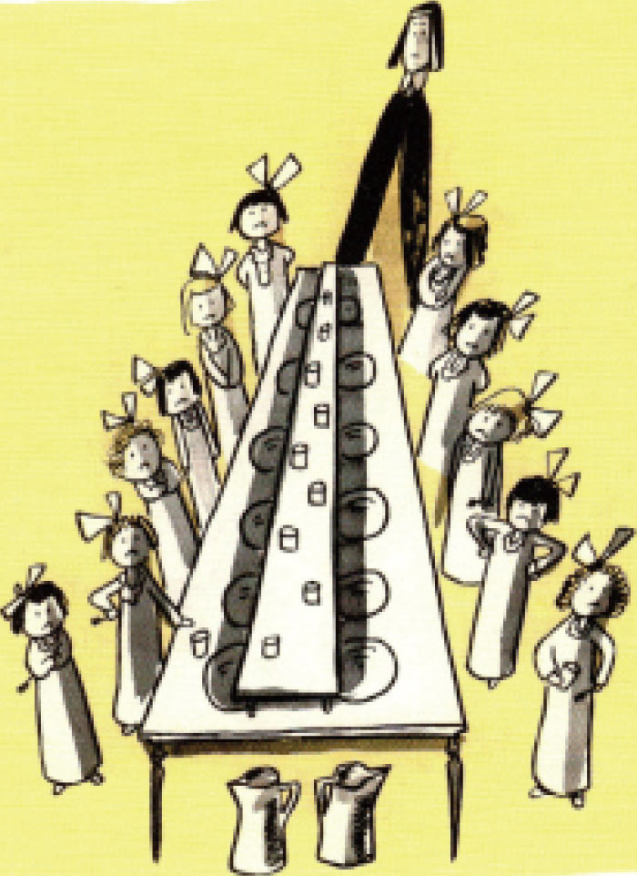 小姑娘们不论做什么事情,总喜欢排成两行。