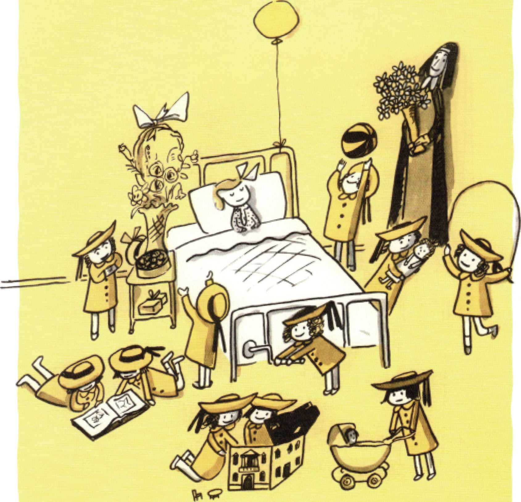 病房里全都是糖果和玩具,还有一个娃娃屋,都是玛德琳的爸爸送给她的。