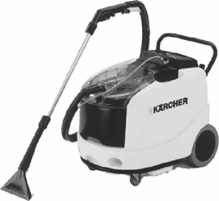 主要用于清洗地毯(见图2-9)。主要部件为两个吸力泵、污水箱、净水箱、强力喷射水泵、电动机,采用真空抽吸原理进行工作。地毯清洗机的种类有很多,常用的有两种:一是干泡式地毯清洗机;二是喷气抽吸式地毯清洗机。