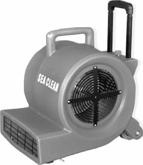 吹干机(见图2-16)又称吹风机,是通过电动机转动,加速空气流动,使被吹物体尽快吹干,主要用于地毯保洁吹干和地面打蜡后吹干。吹干机有带加热装置和不带加热装置两种。