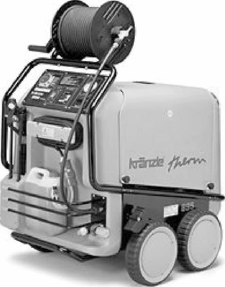 用于外墙、汽车和其他需高压水冲洗的专用设备(见图2-12)。主要由高压泵、电动机、高压管及射水枪组成,它是利用电动机加压后喷射出的高压水流来进行冲洗的,启动时会产生强烈的冲击水流,达到清除灰尘、泥浆和其他污垢杂质的目的。
