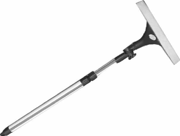 玻璃保洁器(见图2-6)是用来保洁各种门窗玻璃及玻璃隔断的手工工具,由长(短)杆、T形把及配件(橡胶条、拐角插头、短柄刮削器、水枪、注射器、大夹子和刷子等)组成。