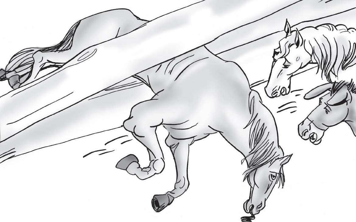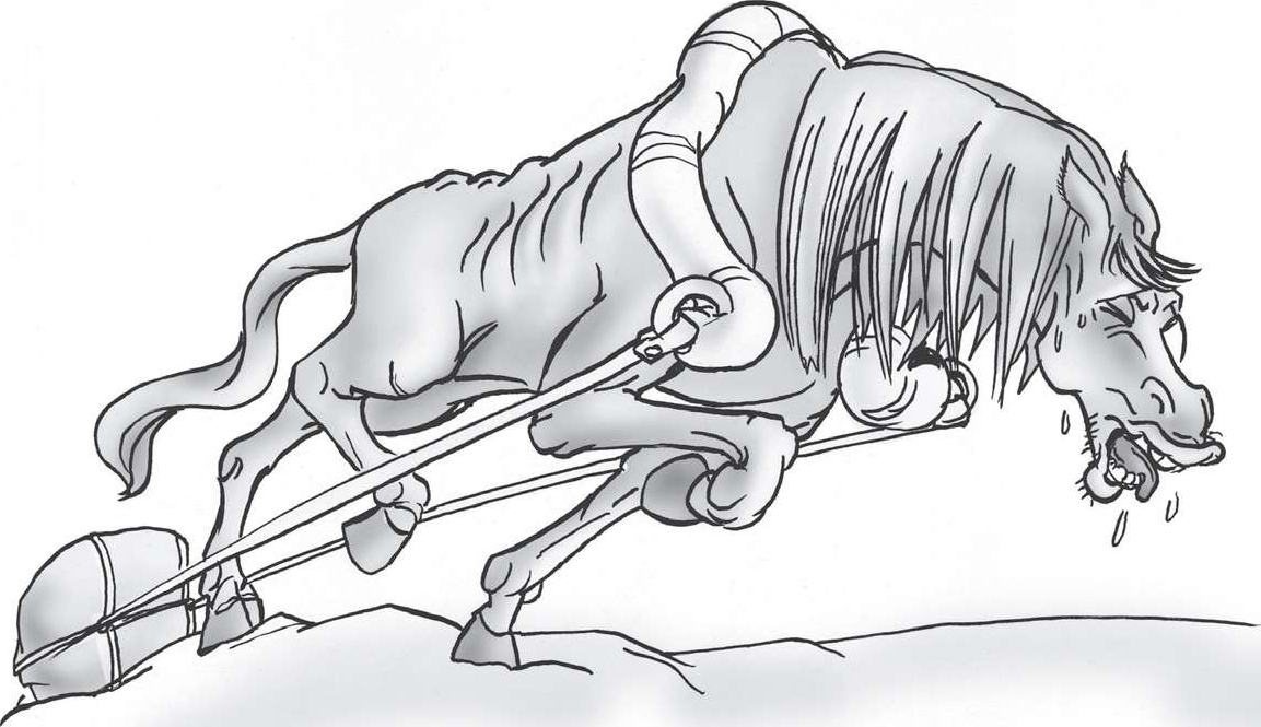 庄园里大约半数的动物冲了出去,朝建风车的小山包直奔而去。拳师就躺在那里。他的身体卡在两根车辕之间,伸着脖子,连头也抬不起来,双眼呆滞迷离,腹部已经完全被汗水浸透,嘴里淌出一小股鲜血。苜蓿跪倒在他身边。