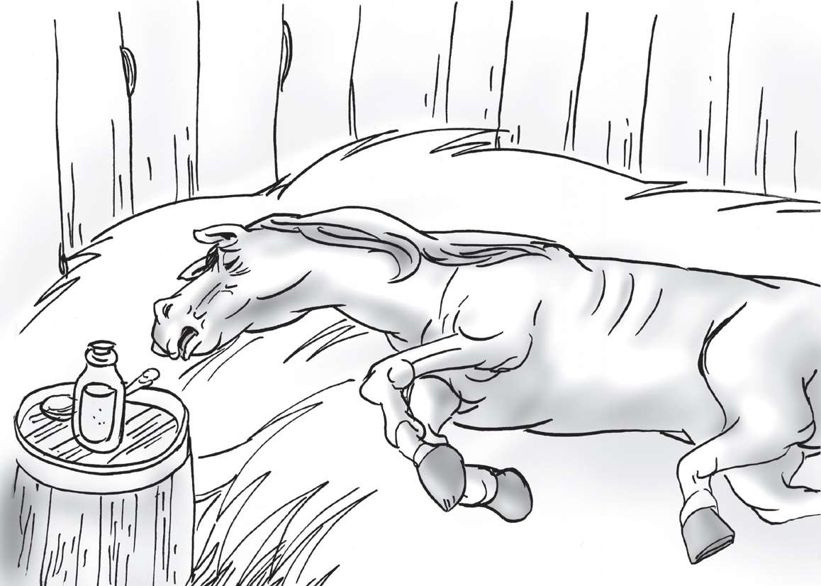 在接下来的两天中,拳师哪儿也没去,就待在他的厩棚里。猪送来了一大瓶粉红色的药,那是他们在浴室的药柜里找到的,由苜蓿每天两次在饭后给拳师服用。晚上,她躺在拳师的厩棚里和他聊聊天,本杰明则为他驱赶苍蝇。拳师表示对所发生的事并不感到懊悔。倘若他能完全康复,他希望自己还能再活上三年。他盼望着那时候能在大牧场的一角度过一段平静的日子。要是那样,他就能第一次有闲暇时间来学习文化,增益心智。他说,他打算用尽余生的精力去学习字母表上除A、B、C、D之外的二十二个字母。