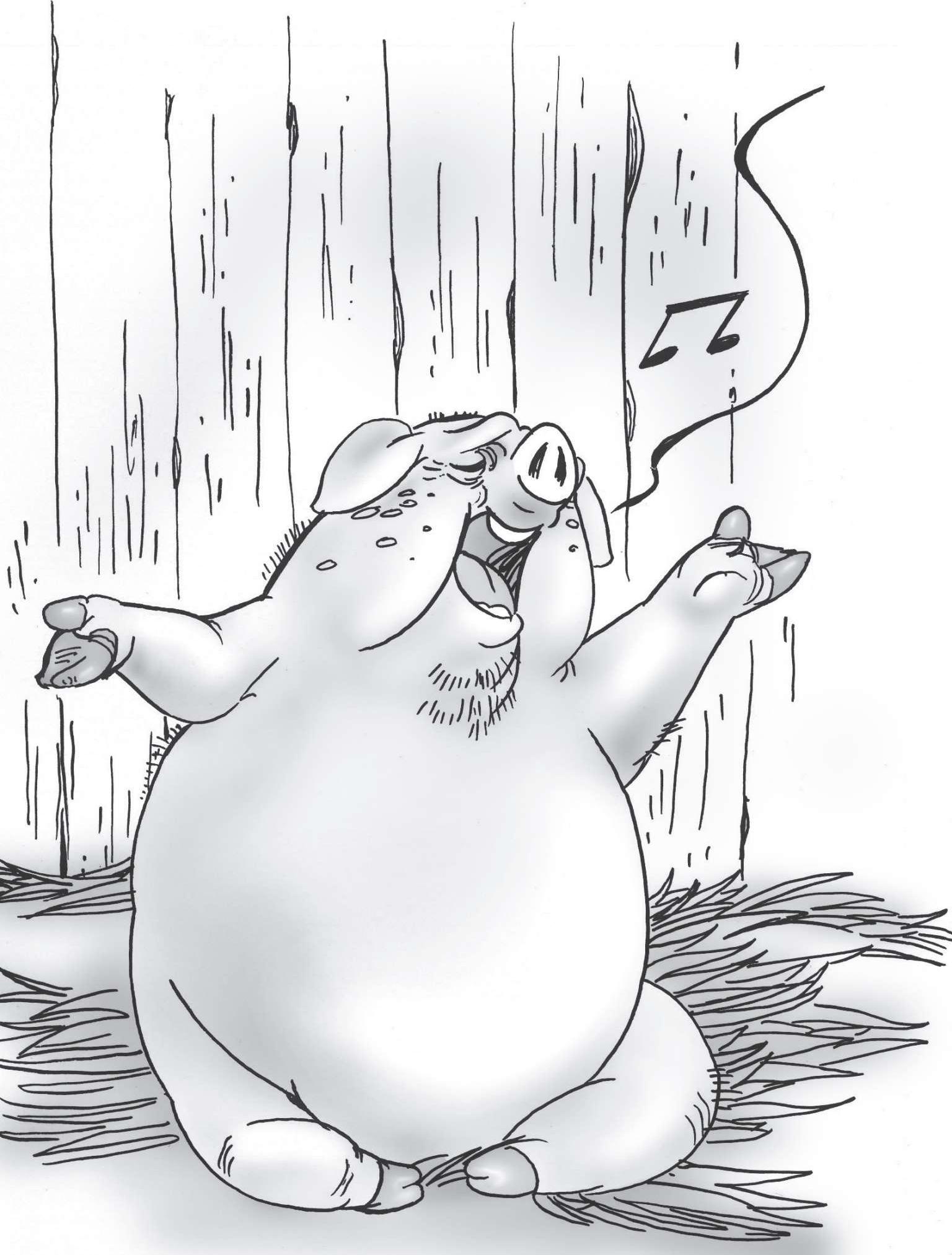 大谷仓一头有一个隆起的台子,少校已经安坐在一个铺了干草的垫子上了,从房梁上悬挂而下的一盏马灯就在他头顶上方。他已经走过了十二个春秋,近来有些发福,但依然是一头相貌堂堂的猪。尽管事实上他的犬牙从来没有长出来过,这也并不妨碍他俨然一副慈祥睿智的老者模样。不到一会儿工夫,其他的动物也开始陆续赶来,并按各自不同的习惯安坐了。最先进场的是三条狗,分别叫作蓝铃铛、杰西和钳子,紧随其后走进来的几头猪立即把营寨驻扎在了台子前面的稻草上。一些母鸡在窗台上就位,几只鸽子则扑腾腾飞上了房梁。羊和牛在猪身后躺下,开始倒嚼起来。两匹拉双轮货车的马,一匹叫拳师,另一匹叫苜蓿,齐头并进。他们进来时走得非常慢,巨大的毛茸茸的蹄子总是小心翼翼地落下每一步,生怕有什么小动物在干草堆中藏着似的。苜蓿是一匹强壮而母性十足的母马,快到中年了。在生育四匹马驹后,她再也没能恢复昔日的体形。拳师则硕大无朋,差不多有六英尺高的个头,强壮得顶得上两匹普通的马。不过,一道顺着鼻梁生出的白毛,使他多少显得有点傻里傻气。实际上,他确实没有超群绝伦的智商,但他坚韧不拔的品格和干活时干劲十足的表现,还是使他赢得了普遍的尊敬。随两匹马之后到的是白山羊穆丽尔,以及那头被称为本杰明的驴子。本杰明是庄园里最年长的动物,脾气非常古怪。他很少讲话,不开口就算了,一旦开口就会来一通不冷不热的怪论。比如他会说上帝给了他尾巴是用来驱赶苍蝇的,但是他却宁愿尾巴和苍蝇都不要。庄园里的动物中,只有他从来不苟言笑。假如被问到为什么会这样,他会说他看不出来有什么值得好笑的东西。不过,尽管没有公开承认,他对拳师却还是心悦诚服的。他俩总是一块儿到果园远处的一小块牧场上度过星期天,肩并着肩吃草,可就是互不搭理。