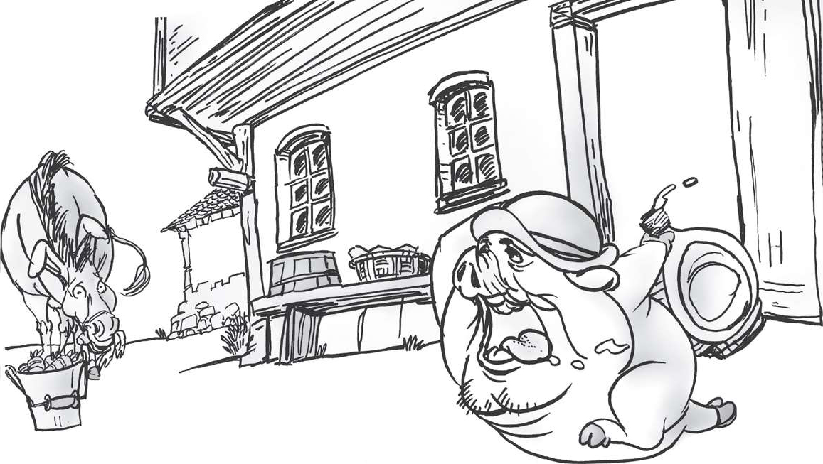 大概就在这段时间,发生了一件几乎让每个动物都难以理解的怪事。一天夜里大约十二点钟的时候,院子中传来一声巨大的跌落声,动物们都纷纷冲出他们各自的畜栏去看。那是一个明月当空的夜晚,在写着“七诫”的大谷仓墙角下,横着一架断成两半的梯子,一时昏迷不醒的声响器正平躺在梯子旁边。在他手边放有一盏马灯、一把漆刷、一罐泼了一地的白漆。几条狗立刻就把声响器围了起来,待他一能够走路,便护送他回到了庄园主院子里。除了老本杰明以外,所有的动物都弄不明白这是怎么回事。本杰明一副心知肚明的神情努了努他的长嘴巴,似乎已经参透了其中的秘密,但他什么都没有说。