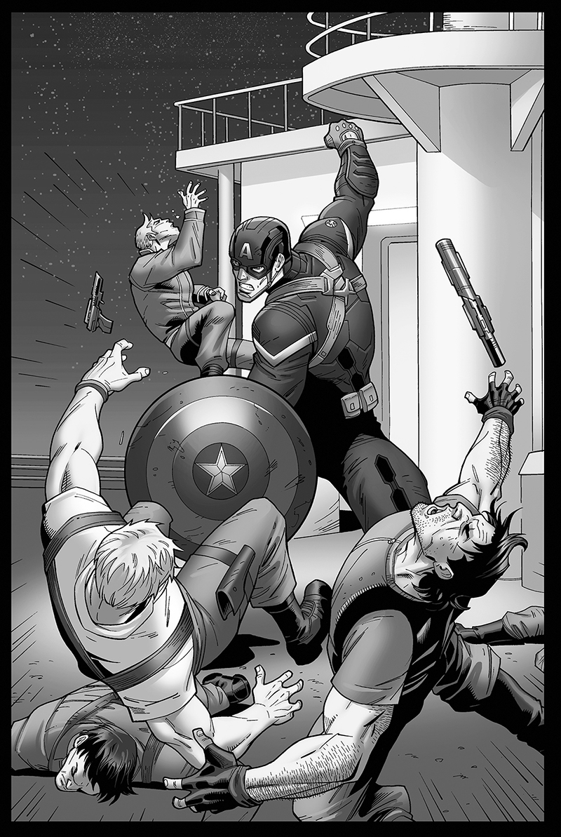 Then there was a soft pop and the nearest mercenary collapsed. Before he even hit the deck, the second man also fell. A moment later Brock Rumlow dropped out of the sky, parachute trailing behind him over the deck. He held the rifle he’d used to drop the two mercenaries. Good shooting , Steve thought. It wasn’t easy to be accurate when you were hanging from a parachute on a windy night and shooting at a moving target on the deck of a ship, which was also moving. Rumlow was among S.H.I.E.L.D.’s best.