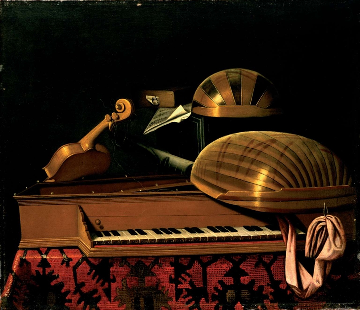 巴尔托洛梅奥·贝泰拉是静物画大师埃瓦里斯托·巴西利斯(Evaristo Baschenis,1617~1677)的学生,像巴西利斯一样,他的工作地点离克雷莫纳(Crémone)的乐器制造商不远。他们以画作为起点,试图展现乐器及其不同使用方法中的美感,以此作为剧院情境的缩影。绘制诗琴是因为它的频率特别,它的乐声常常忧郁而悲伤,充满危险的诱惑力。维金纳琴是一种键琴,常作为女性的乐器,因为它很轻,易于搬运。小提琴当时获得巨大成功,但在17世纪,它只是刚刚获得贵族认可,此前很长时间都是大众化的、民间的乐器,名声不太好。